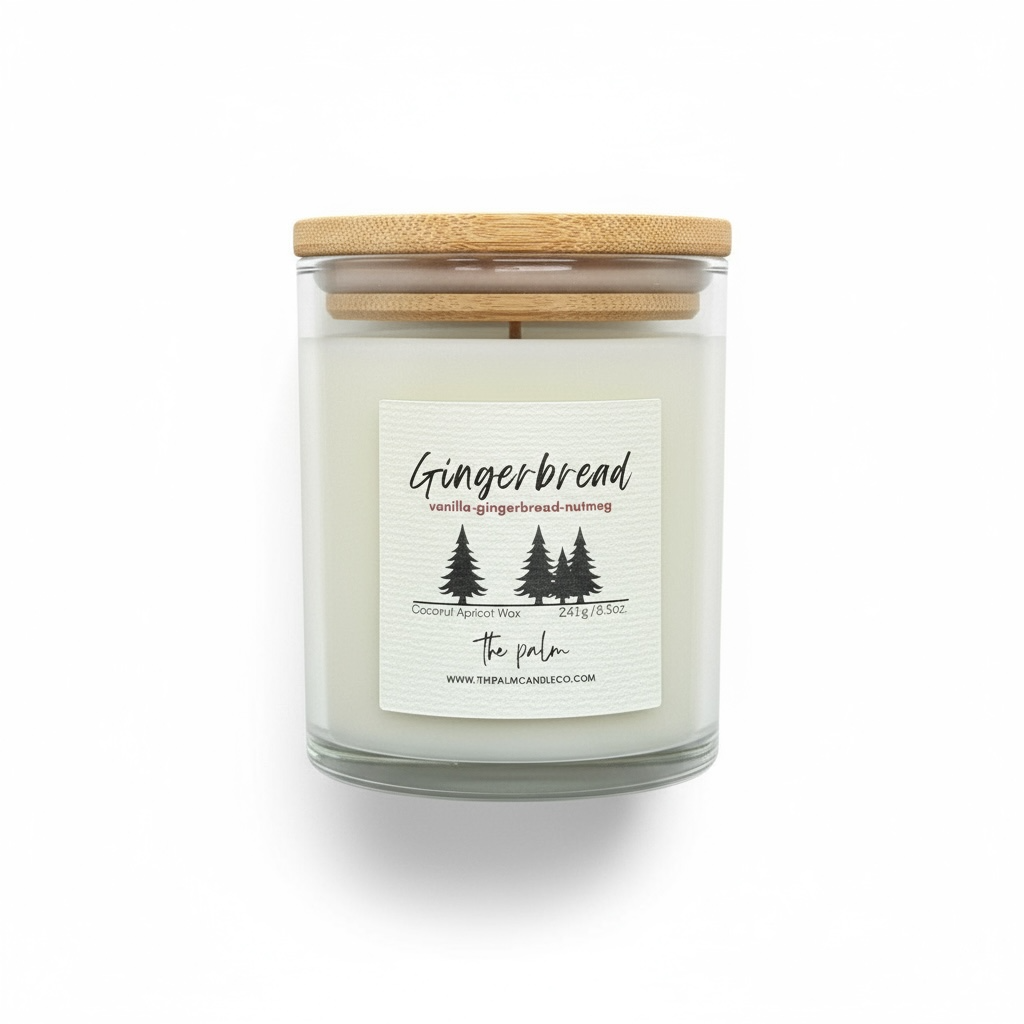 Our limited Collection, Gingerbread candle will arrive in a clear glass vessel with bamboo lid; Palm Candle Co., encourages you to re-use, re-purpose or re-cycle, after use. These glass vessels can be washed out and used to hold many household items.